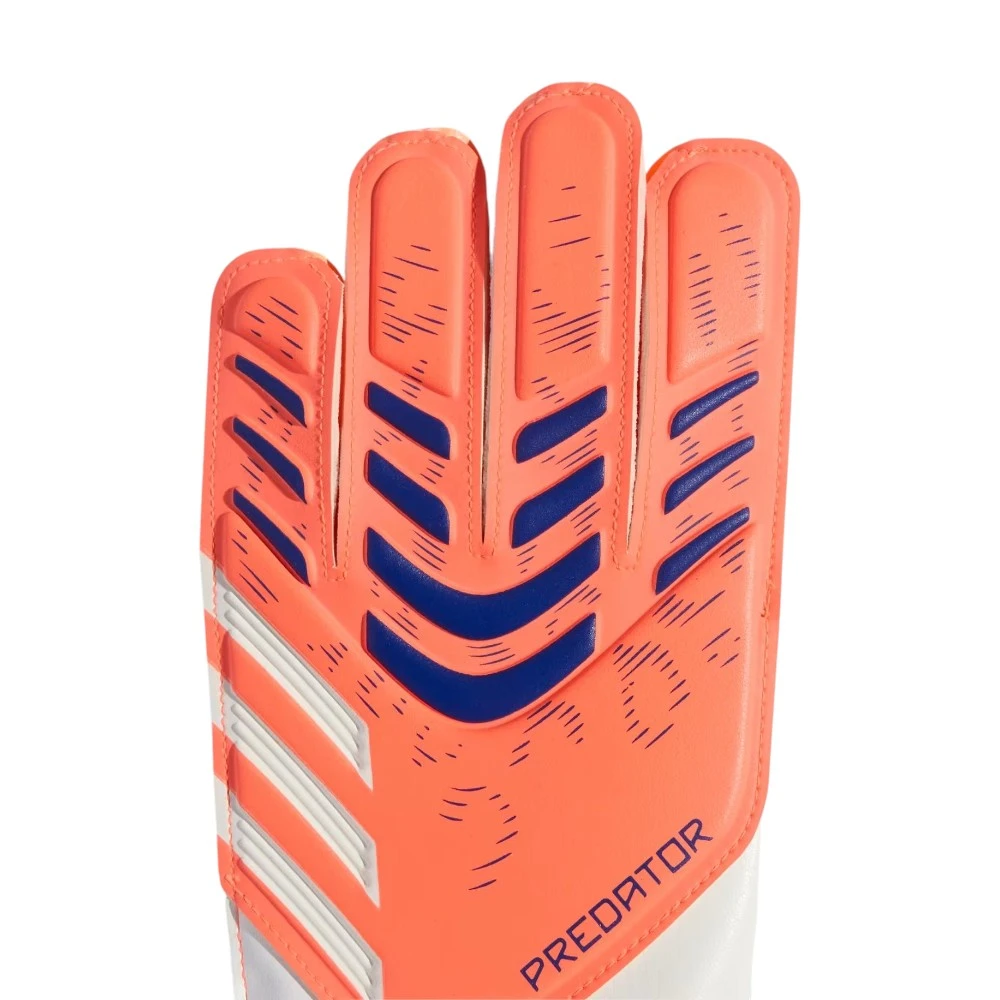 Детские вратарские перчатки adidas Predator Training созданы для уверенной игры и развития профессиональных навыков. Мягкая латексная ладонь Soft Grip обеспечивает надёжное сцепление с мячом в любых погодных условиях, а гибкая тыльная сторона и просторный вырез для пальцев дарят свободу движений и комфорт во время тренировок. Полуохватывающий ремешок на запястье гарантирует точную посадку и устойчивость, позволяя сосредоточиться только на игре.