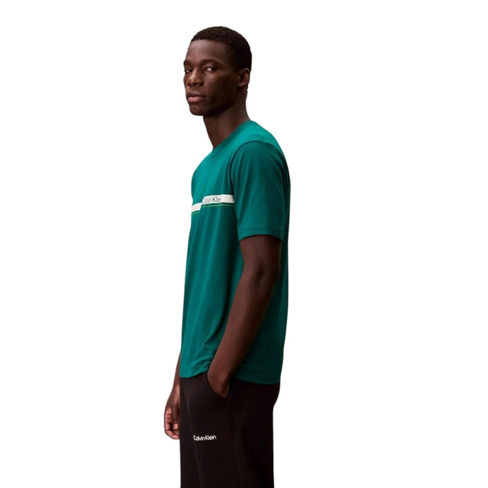 Футболка Calvin Klein — это универсальная модель для повседневного комфорта и стиля. Изготовленная из эластичной хлопковой смеси, она приятно ощущается на коже и обеспечивает свободу движений в течение дня. Классический круглый вырез и короткие рукава создают лаконичный силуэт, а фирменный принт с логотипом Calvin Klein на груди добавляет узнаваемый акцент бренда. Идеальный выбор для повседневных образов — сочетание простоты, качества и современного стиля.
