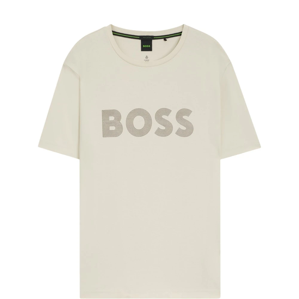 Мужская бежевая футболка BOSS Gloss-logo T-shirt In Pima Cotton размер m