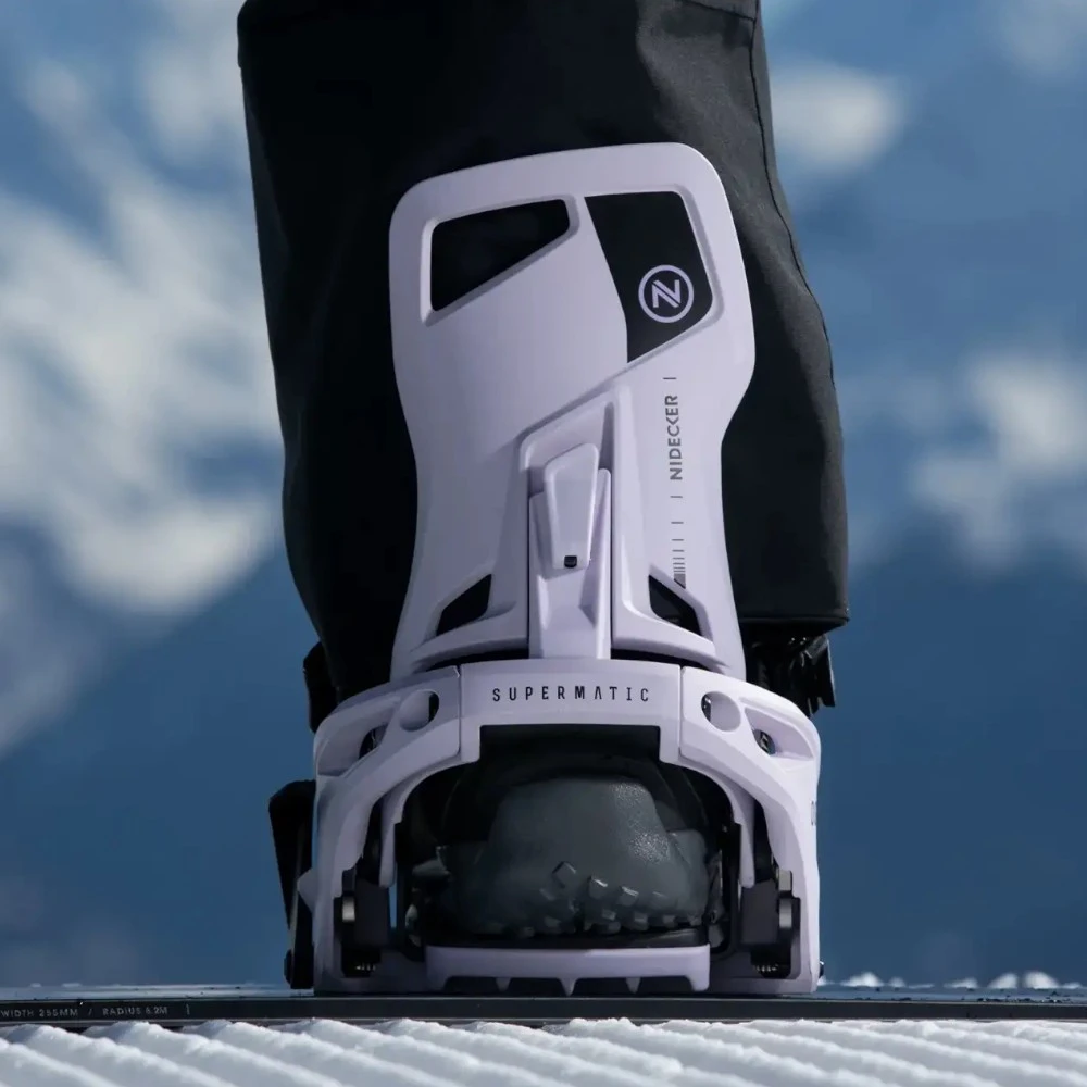 Nidecker Supermatic® OG — революционные автоматические крепления, которые работают с любыми сноубордическими ботинками. Просто вставьте ногу сзади и наступите на пятковую педаль — хайбэк автоматически поднимется, и вы готовы ехать. Быстрый рычаг освобождения обеспечивает столь же быстрое снятие.