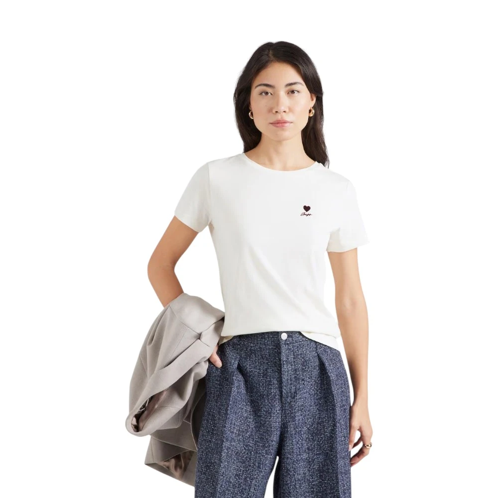 Женская футболка BOSS C-Elove 1 из 100% мягкого хлопкового трикотажа джерси обеспечивает комфорт и естественную посадку благодаря классическому крою. Круглый вырез и лаконичный силуэт делают модель универсальной, а минималистичное сердечко с логотипом BOSS добавляет изящный фирменный акцент, освежая повседневный образ.
