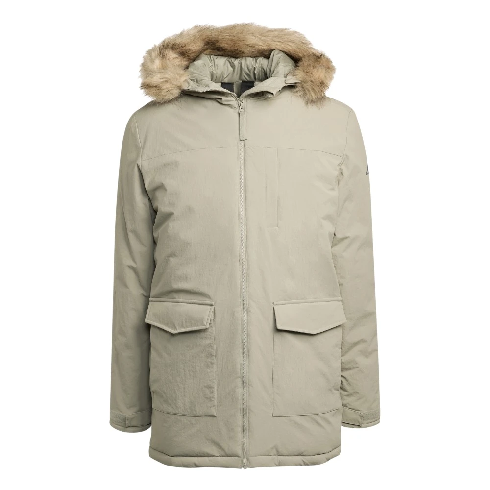 Зимняя куртка adidas — тёплая, стильная и надёжная в любую погоду. Утеплитель и водоотталкивающее покрытие обеспечивают защиту от холода и влаги, сохраняя комфорт в течение дня. Съёмный меховой воротник на капюшоне добавляет образу тепла и выразительности.