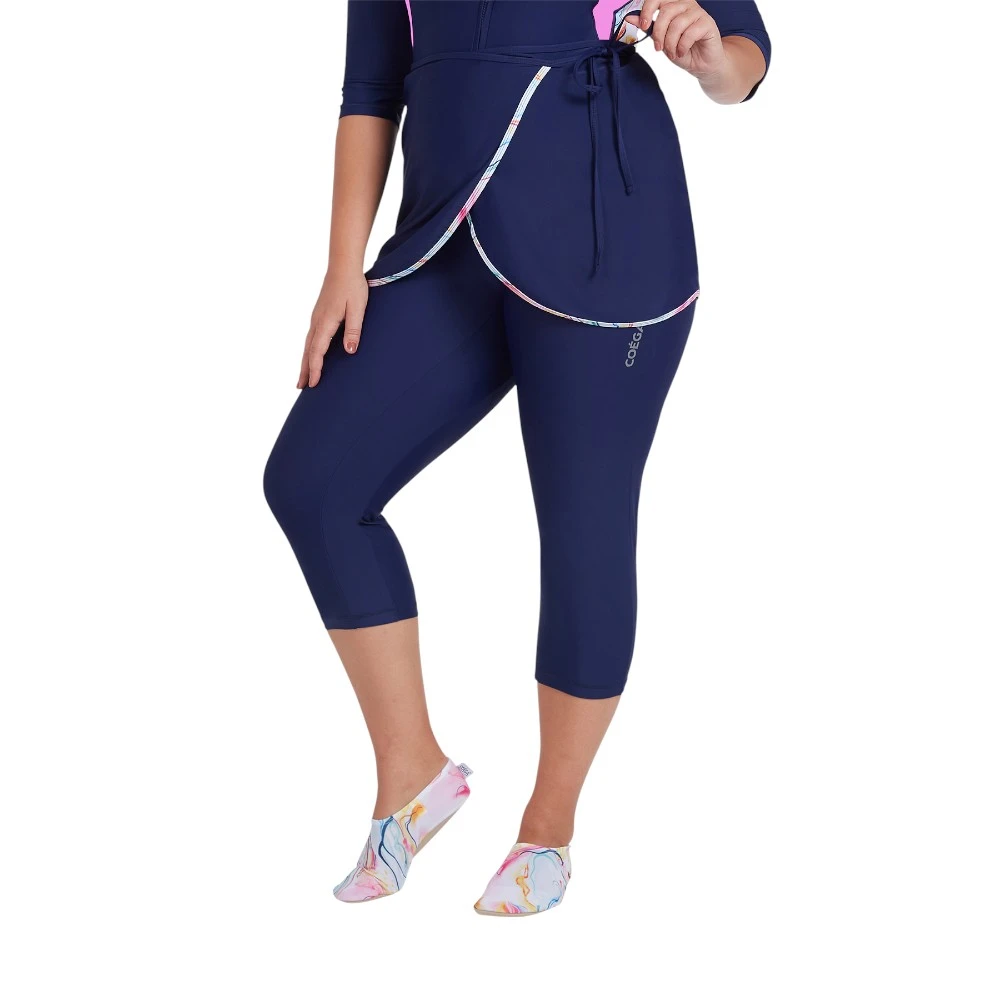 Юбка выполнена из эластичного материала на основе полиамида с добавлением эластана. Ткань мягко прилегает к телу, не сковывает движения и остаётся комфортной даже в жаркую погоду. Материал быстро высыхает после контакта с водой, не утяжеляется и сохраняет форму при регулярном использовании.