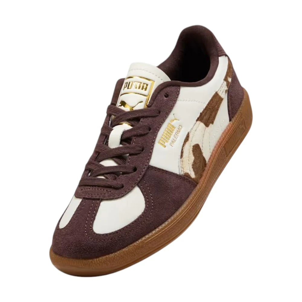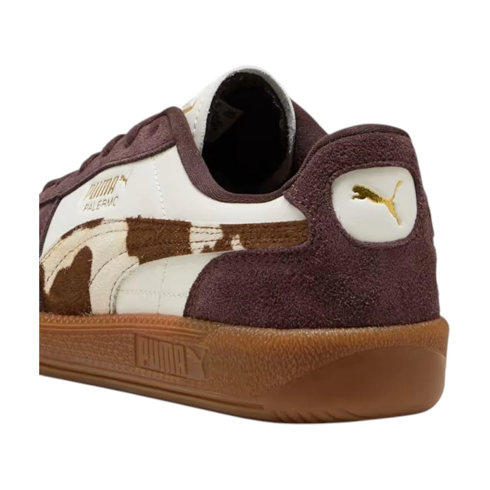 Кеды Puma Palermo Cow Print в коричневом цвете — это выразительное сочетание классического силуэта и смелкого дизайнерского акцента. Модель вдохновлена ретро-эстетикой, но переосмыслена в современном ключе, что делает обувь ярким элементом повседневного гардероба. Оригинальный принт подчёркивает индивидуальность образа и привлекает внимание.