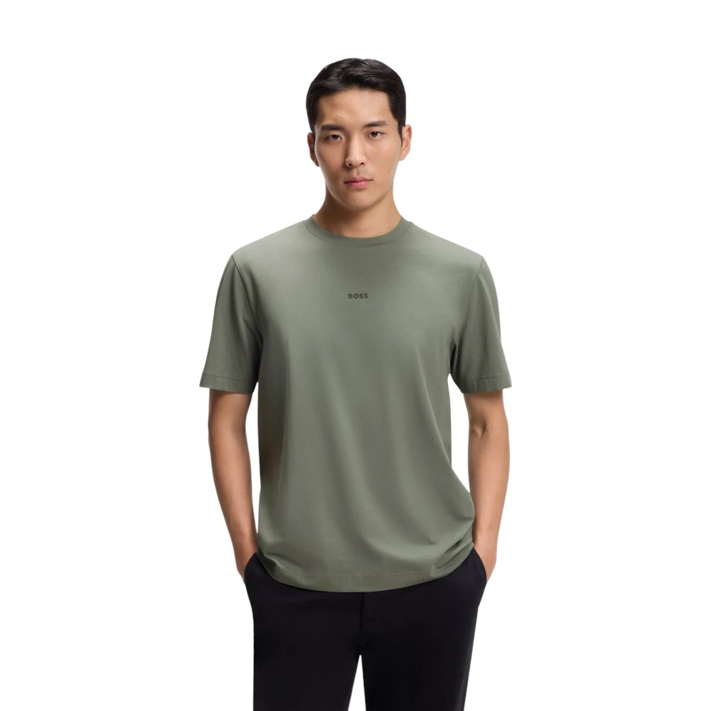 Серый цвет отличается практичностью и универсальностью — он легко сочетается с джинсами, брюками, шортами и спортивной обувью. Футболка Boss Tchup подходит для стиля casual, smart casual и минималистичных образов, а также для работы, прогулок, путешествий и отдыха.