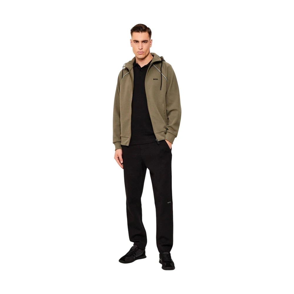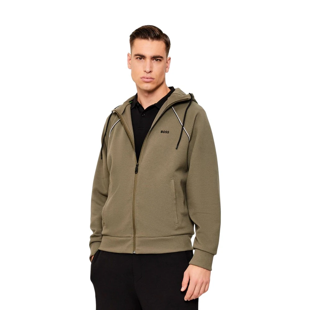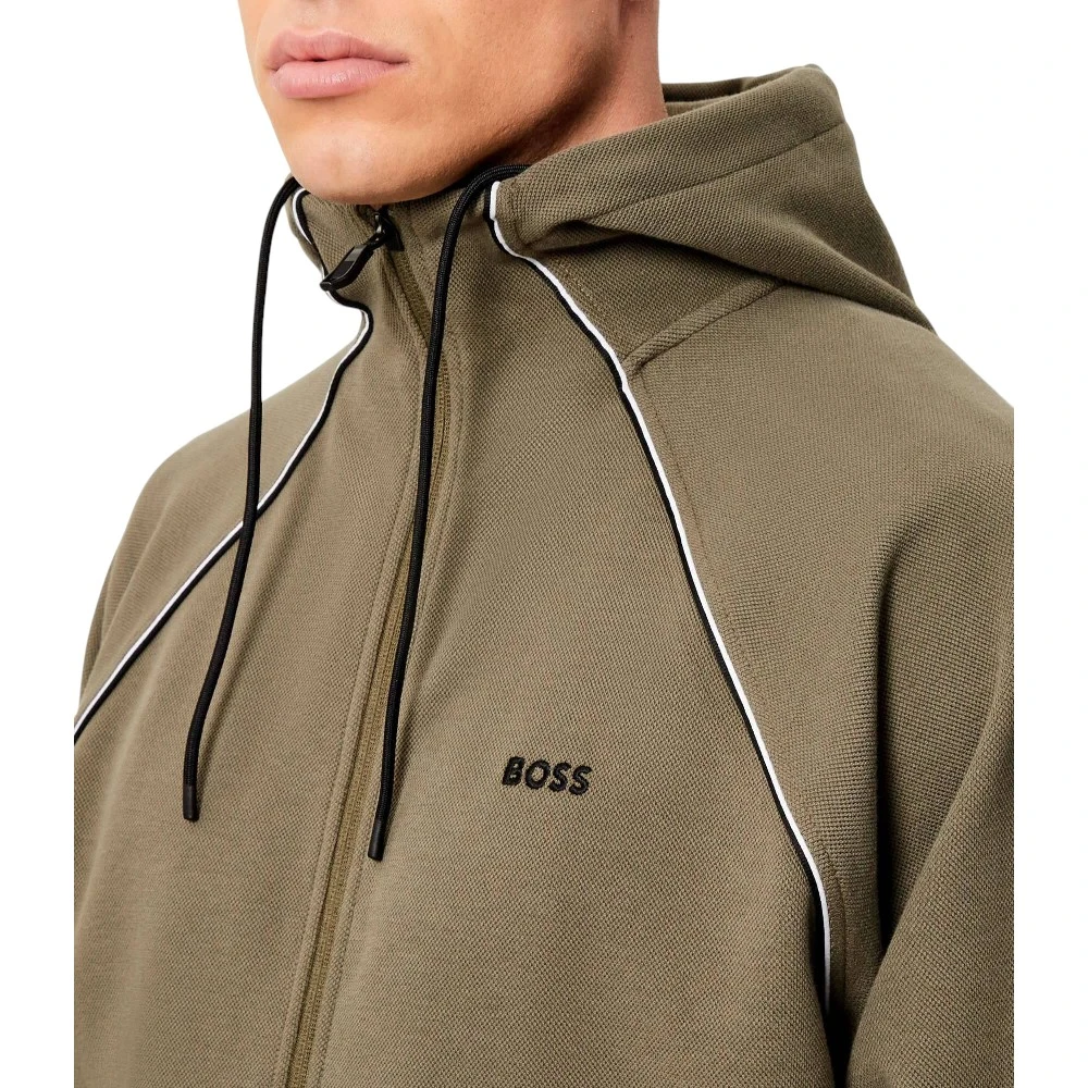 Материал на основе хлопка с добавлением полиэстера и эластана отличается мягкостью, устойчивостью к износу и сохраняет форму даже при активной эксплуатации. Ткань приятна к телу и подходит для ношения в течение всего дня. Модель оснащена капюшоном с регулируемыми шнурками, застёжкой-молнией и боковыми карманами, что делает толстовку удобной для прогулок, поездок и активного образа жизни. Аккуратный логотип Boss подчёркивает фирменный стиль и завершает образ.