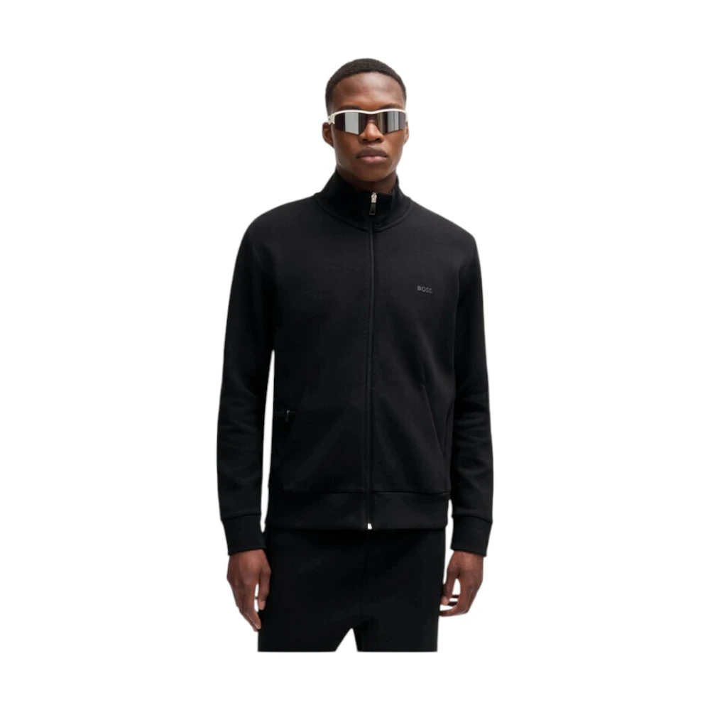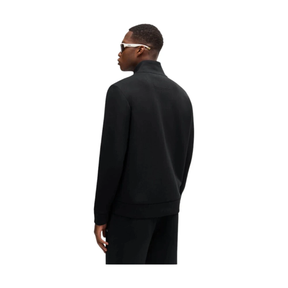 Кофта имеет прямой крой, воротник-стойку и застёжку на молнии по всей длине, что позволяет регулировать посадку и адаптировать образ под разные погодные условия. Эластичные манжеты и нижний край обеспечивают удобство и комфорт в течение дня. Лаконичный логотип Boss на груди подчёркивает статус модели и делает образ завершённым, не перегружая дизайн лишними деталями.