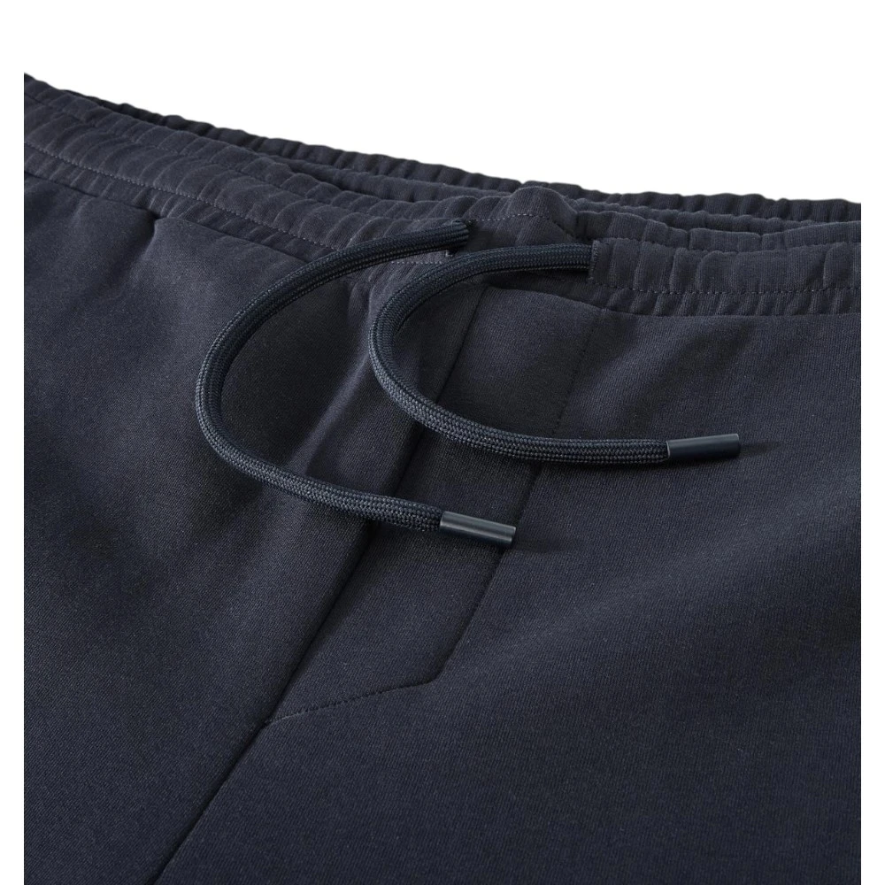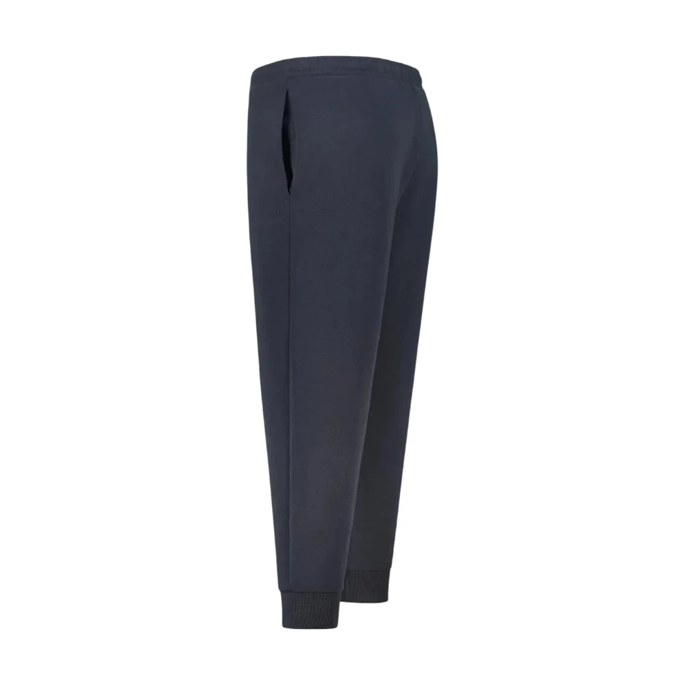Брюки имеют прямой силуэт с аккуратно зауженными штанинами и эластичными манжетами внизу. Пояс на резинке дополнен регулируемым шнурком, что позволяет точно подогнать посадку по фигуре. Практичные боковые карманы добавляют удобства в повседневном использовании. Лаконичный дизайн дополнен сдержанным логотипом Boss, подчёркивающим принадлежность модели к премиальному сегменту.