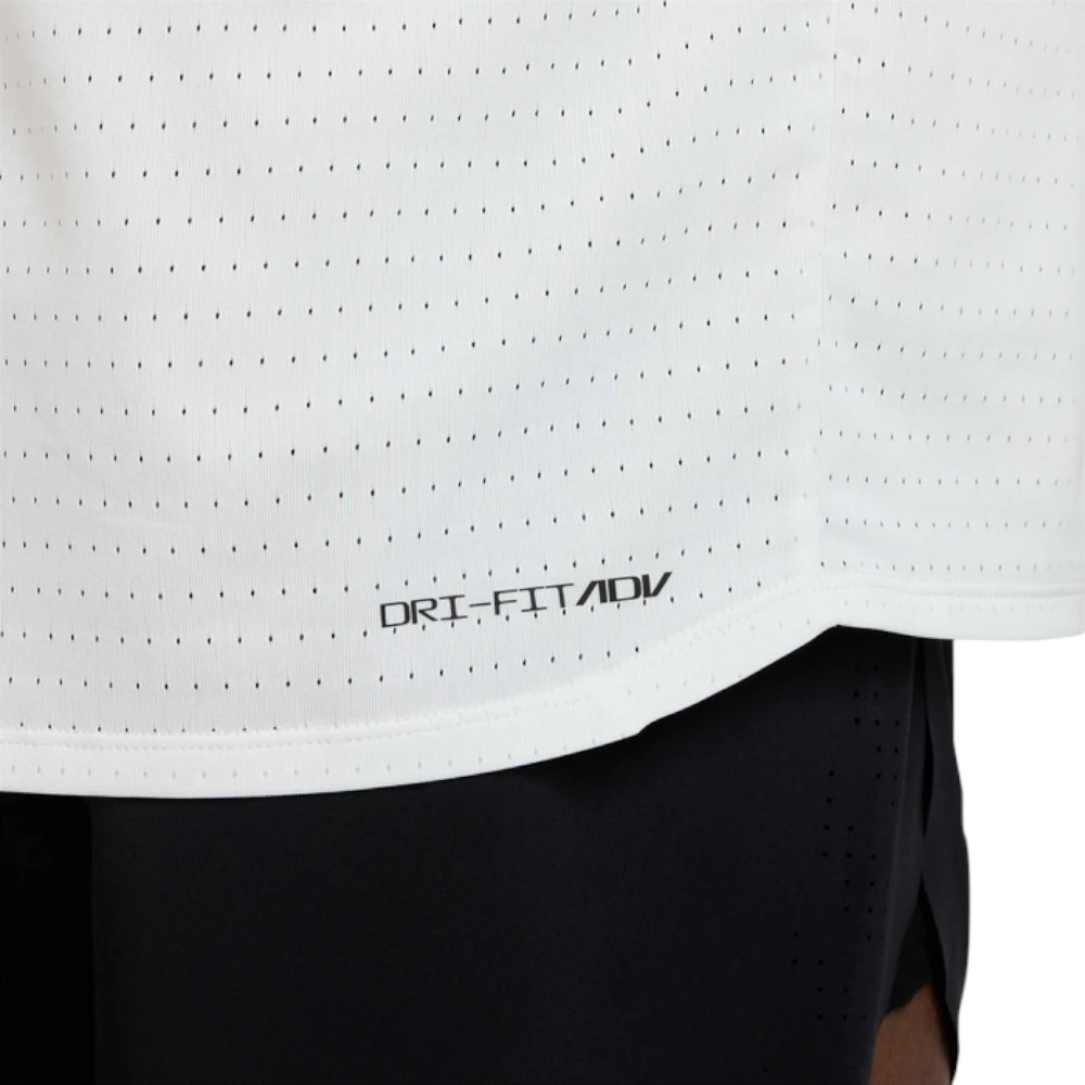 Футболка выполнена из 100% полиэстера с применением технологии Dri-FIT ADV, которая обеспечивает улучшенный отвод влаги и ускоряет испарение пота. Лёгкий и дышащий материал помогает поддерживать комфортный микроклимат даже во время пиковых нагрузок. Ткань практически не ощущается на теле, снижает риск перегрева и подходит для длительных тренировок и соревнований.