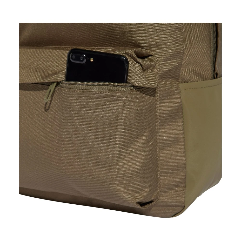 Рюкзак Adidas Classic 3 Bar Logo Backpack — практичное и универсальное решение для повседневного использования, учебы, работы и активного образа жизни. Оливковый цвет придает модели современный и сдержанный вид, который легко сочетается со спортивной и городской одеждой.