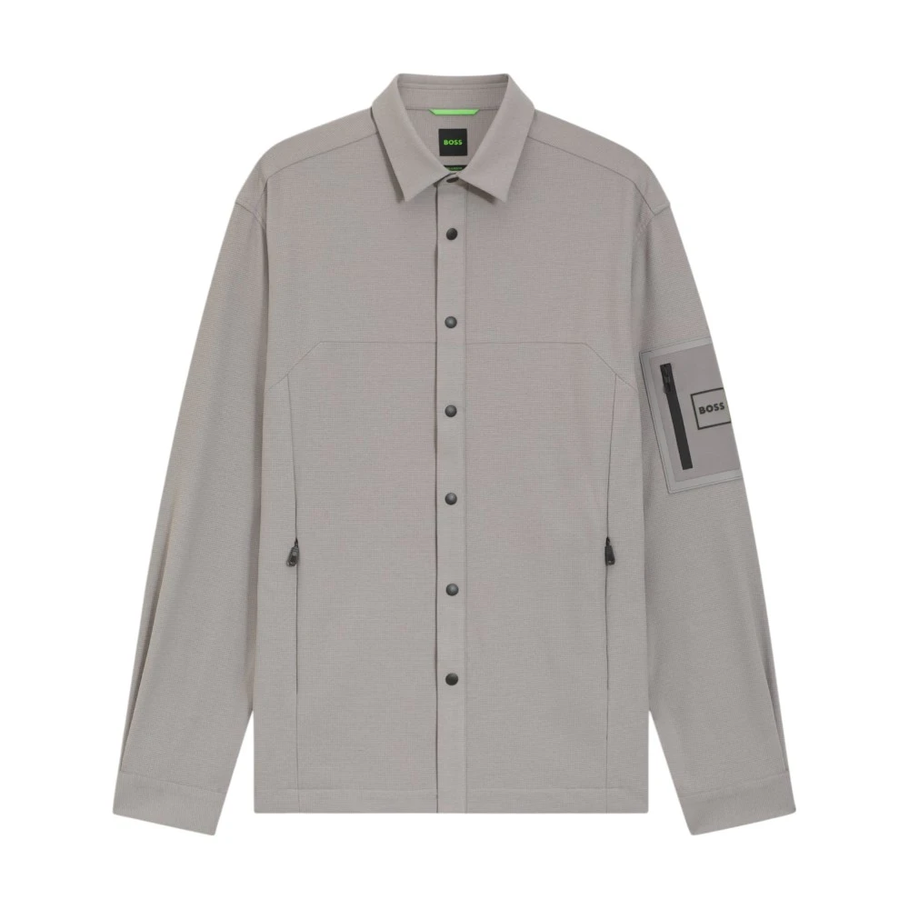Рубашка имеет прямой крой, классический отложной воротник и застёжку на кнопках, что обеспечивает удобную посадку и простоту в использовании. Вафельная структура материала повышает комфорт при носке и делает изделие практичным для разных погодных условий. Модель дополнена функциональными карманами на молнии, а также фирменной нашивкой Boss на рукаве, подчёркивающей оригинальность и современный стиль.