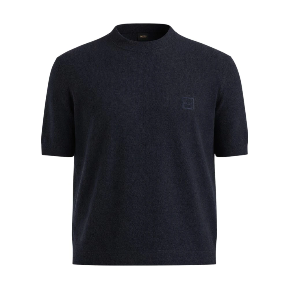 Мужская футболка BOSS Knitted Sweater в цвете индиго — это современная интерпретация классической футболки, выполненная из тонкого вязаного трикотажа. Модель сочетает визуальную строгость, комфорт и благородную фактуру, делая её универсальным решением для повседневного и smart casual гардероба.