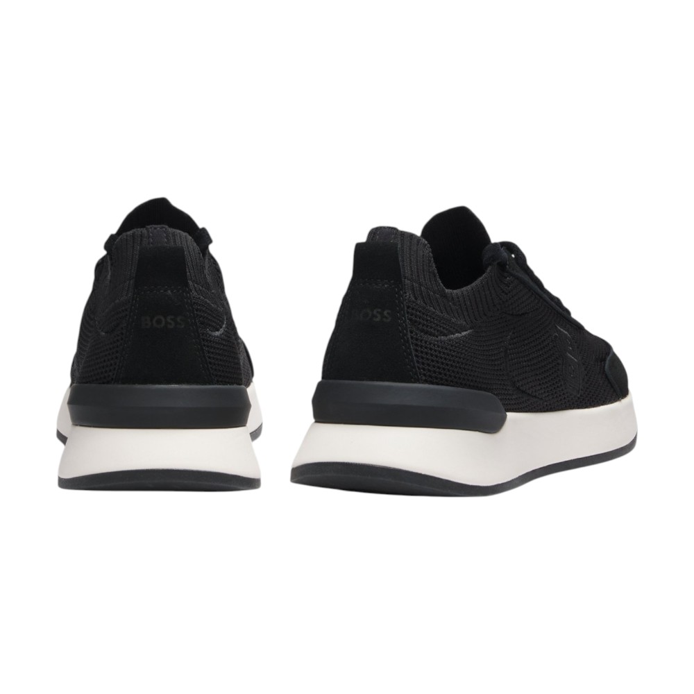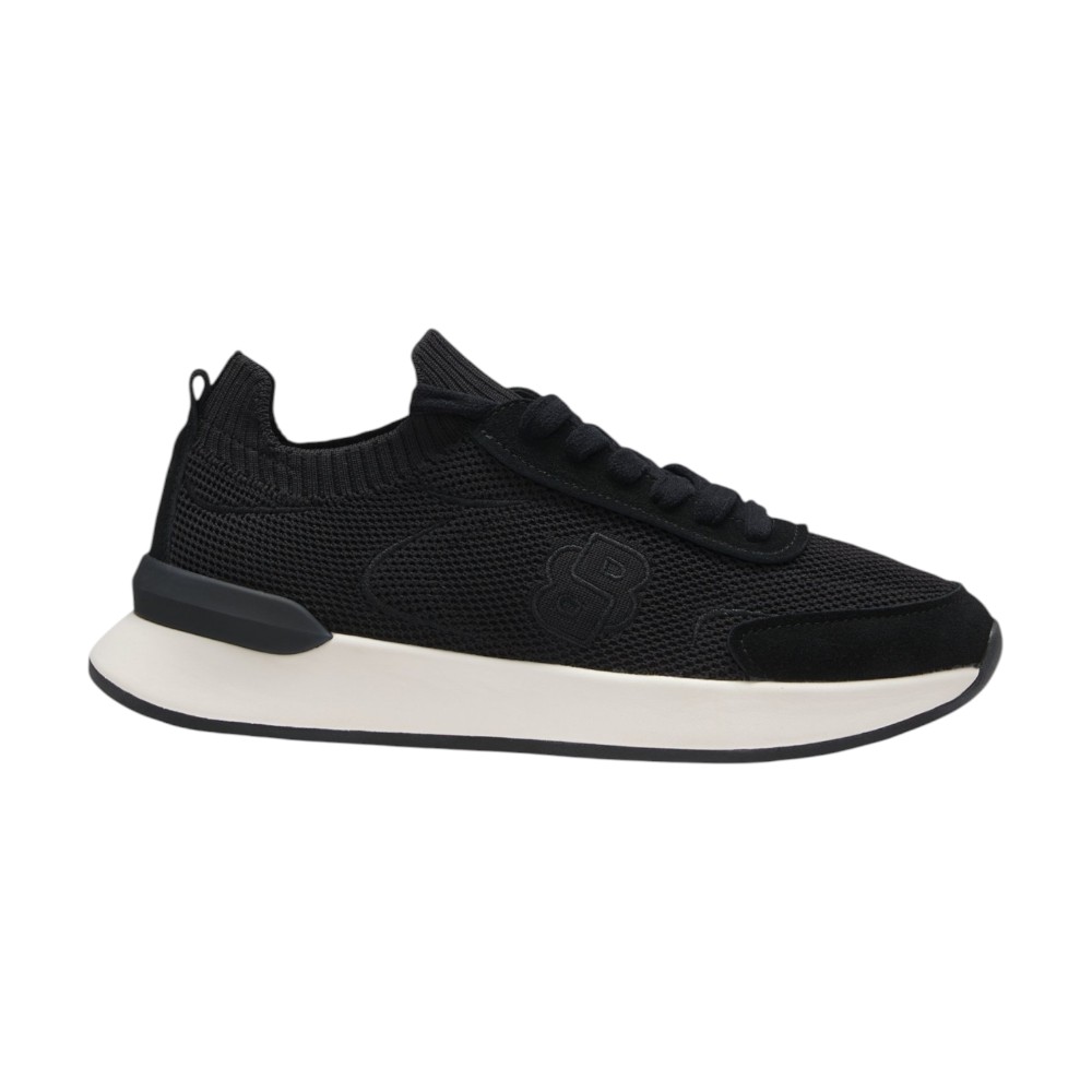 Женские кроссовки Boss B Icon Runn Knsd в чёрном цвете — это гармония динамичного дизайна и продуманной функциональности. Модель выполнена из 100% полиэстера с лёгкой вязаной текстурой, которая обеспечивает воздухопроницаемость и мягкую адаптацию к форме стопы. Эластичная конструкция комфортно фиксирует ногу, создавая ощущение устойчивости и лёгкости при каждом шаге.