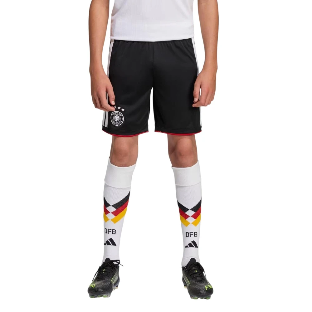 Детские шорты Adidas Germany 26 Home в черном цвете — это удобная спортивная модель, вдохновленная формой национальной сборной Германии. Шорты сочетают современный футбольный стиль, практичность и комфорт, благодаря чему отлично подходят для тренировок, активных игр и повседневной активности. Классический черный цвет делает модель универсальной и легко сочетаемой с футболками, спортивными кофтами и другой экипировкой.