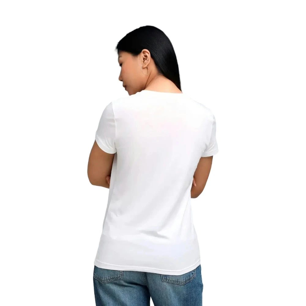 Белый цвет придаёт изделию свежесть и лёгкость, а также позволяет легко сочетать его с любыми элементами гардероба. Футболка гармонично комбинируется с джинсами, шортами, юбками и спортивными брюками, создавая стильные образы в стиле casual, sport casual и athleisure.