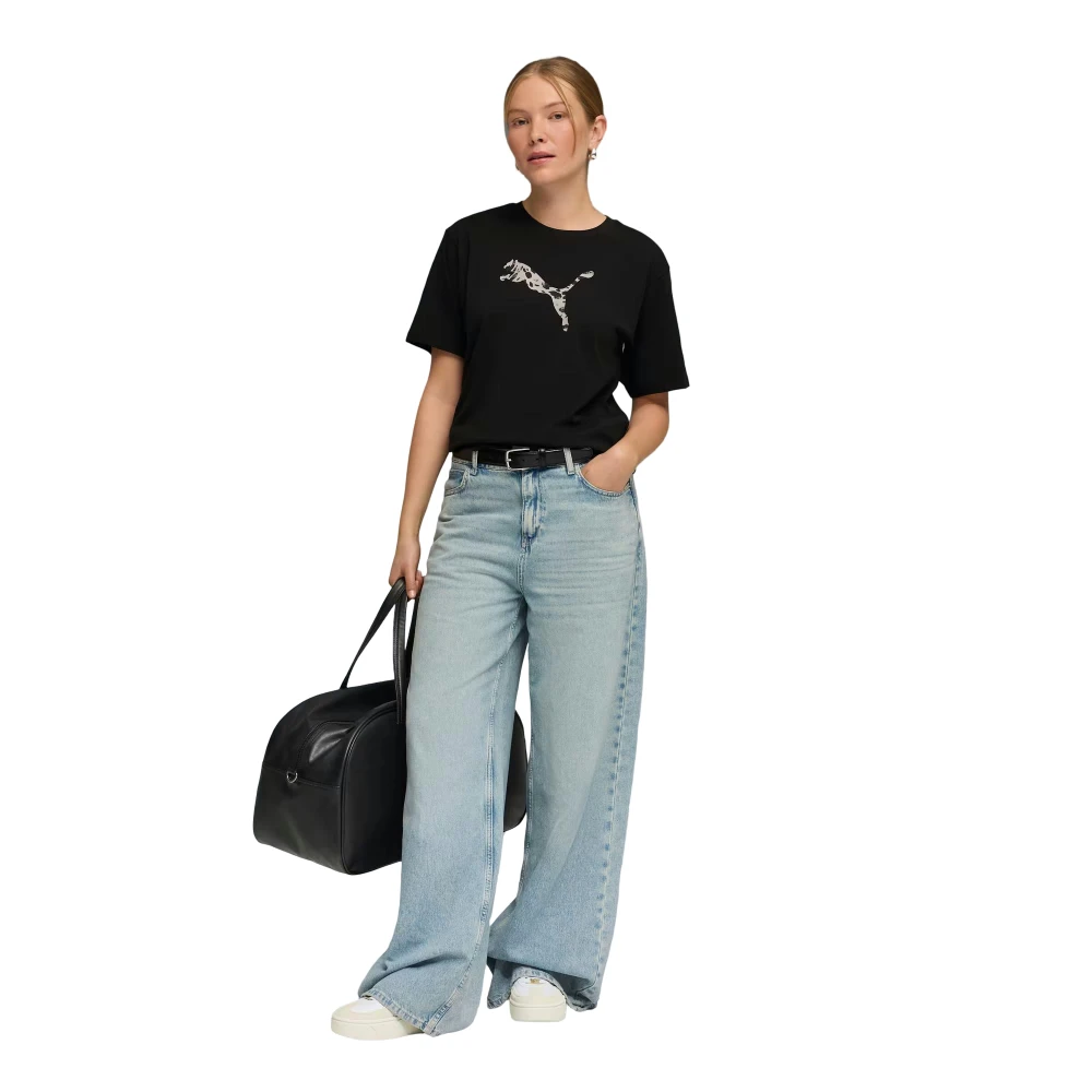 Дизайн отражает философию бренда PUMA — сочетание минимализма и выразительных деталей. Черная база и контрастный принт создают стильный баланс, позволяя легко комбинировать футболку с джинсами, спортивными брюками, шортами или юбками. Это универсальное решение для создания как расслабленных casual-образов, так и более смелых сочетаний.