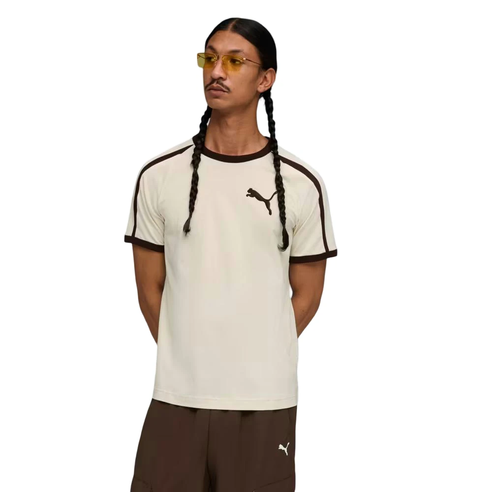 Мужская футболка PUMA T7 Big Cat Ringer Tee в бежевом цвете — это стильное сочетание классики и спортивного наследия бренда. Нейтральный бежевый оттенок придает модели универсальность и делает её идеальной основой для повседневных образов. Контрастные элементы в стиле ringer и фирменный логотип Big Cat подчеркивают динамичный характер модели и добавляют ей узнаваемости.