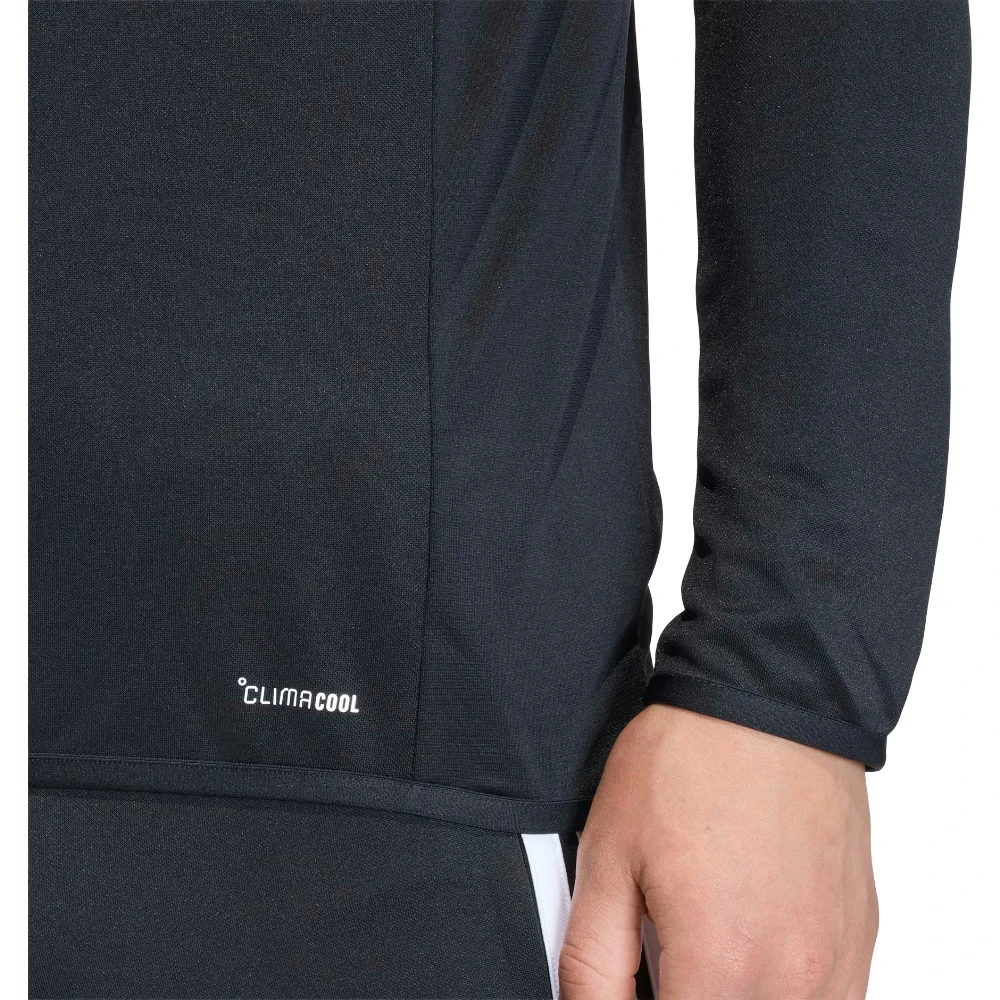 Продуманный крой обеспечивает удобную посадку и свободу движений, позволяя сосредоточиться на тренировочном процессе. Молния по всей длине и высокий ворот добавляют функциональности, защищая от прохлады и ветра. Черный цвет делает модель максимально универсальной, легко сочетаясь с любой спортивной экипировкой или повседневной одеждой.